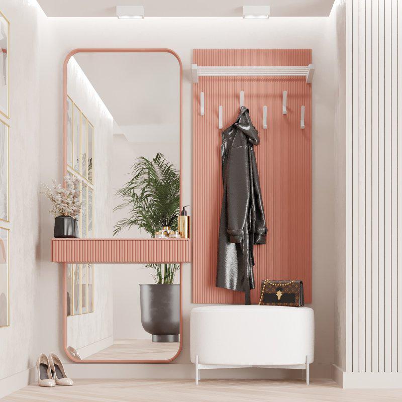 Готовая прихожая имеет большую палитру цветов и доступна в следующих оттенках: белый, черный, марсал, оливковый, коралл, фиалковый, капучино, темная лазурь. Вешалка имеет шесть крючков для верхней одежды и полку для головных уборов или аксессуаров. Зеркало также укомплектовано полкой и имеет нишу для косметики или декора. Комплект в прихожую – это прекрасная часть домашнего интерьера, которая придаст вашему дому стиля и вкуса.
