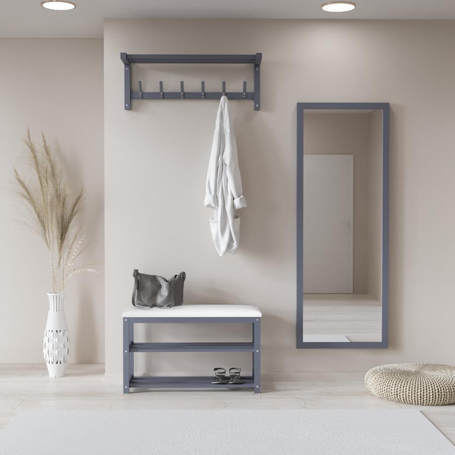 Передпокій виготовлений з натурального масиву берези — одного з найкращих за механічними властивостями природних матеріалів. До комплекту входить дерев'яна настінна вішалка з металевими гачками, пофарбованими порошковою фарбою в тон виробу. Розміри виробу (В/Ш/Г): 320×860×250 мм.
